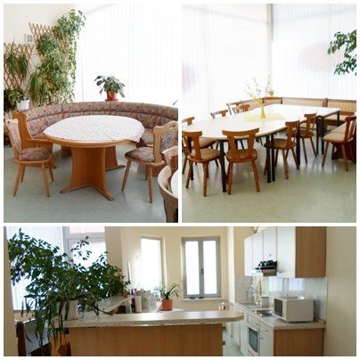 einen Beratungsraum und einen Versammlungsraum mit Küche,
